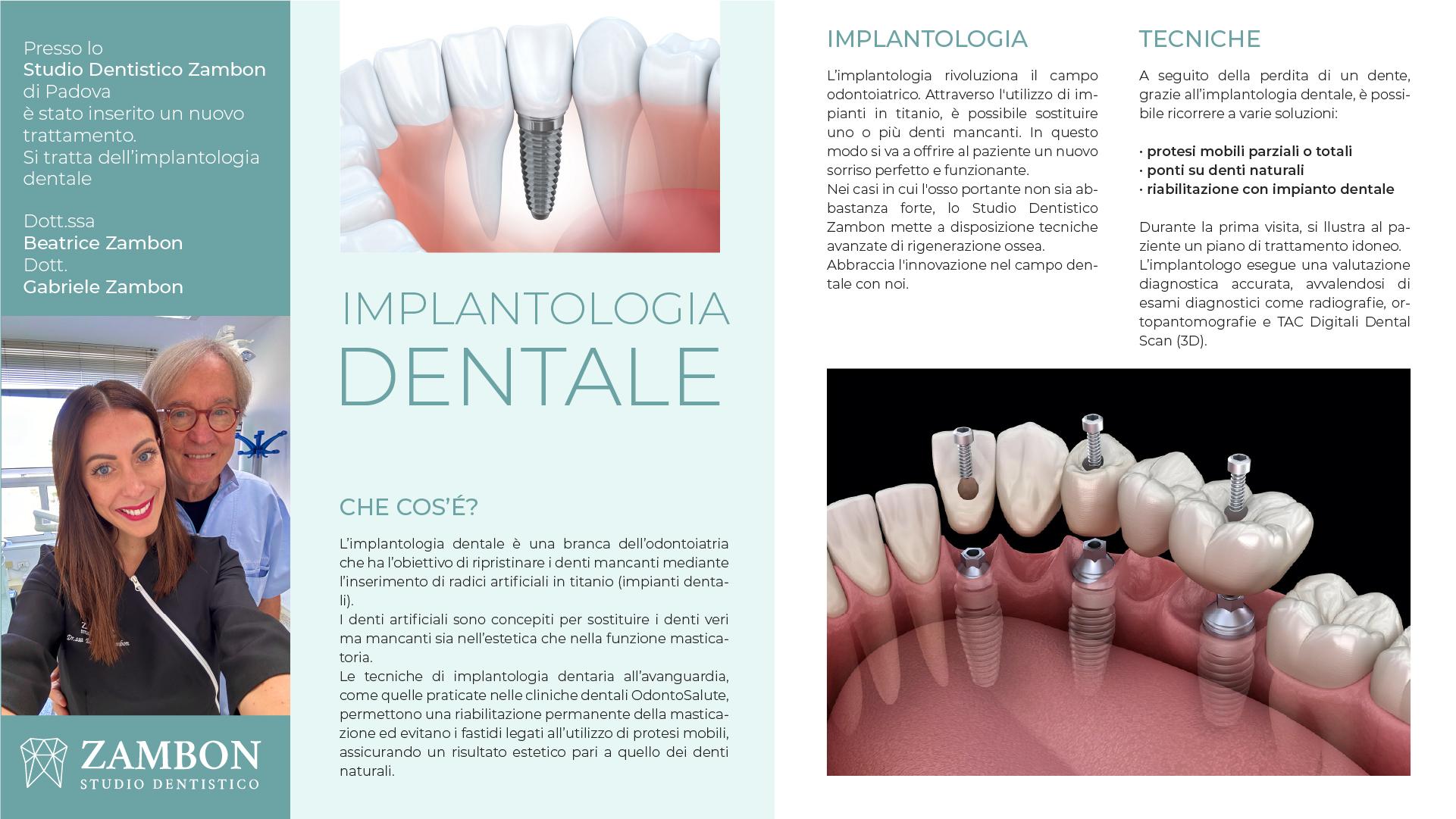 Il dottor Zambon è inoltre pioniere della chirurgia guidata a carico immediato dal 2007 in occasione del lancio mondiale a Las vegas della Nobel Bio Care di cui è relatore. Grazie a questa tecnica con un'unica seduta vengono applicati al paziente gli impianti e la protesi fissa immediata senza l’utilizzo del bisturi.