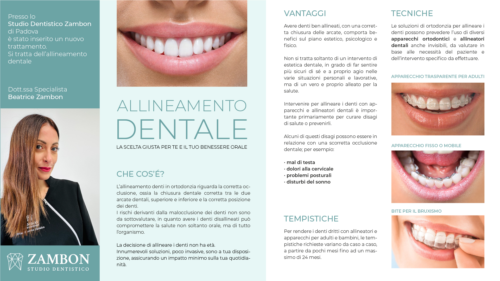 L’uso di apparecchi ortodontici linguali o trasparenti permette al paziente di mantenere una buona estetica. Il dottor Zambon collabora da anni con lo studio odontoiatrico Angi Turco.