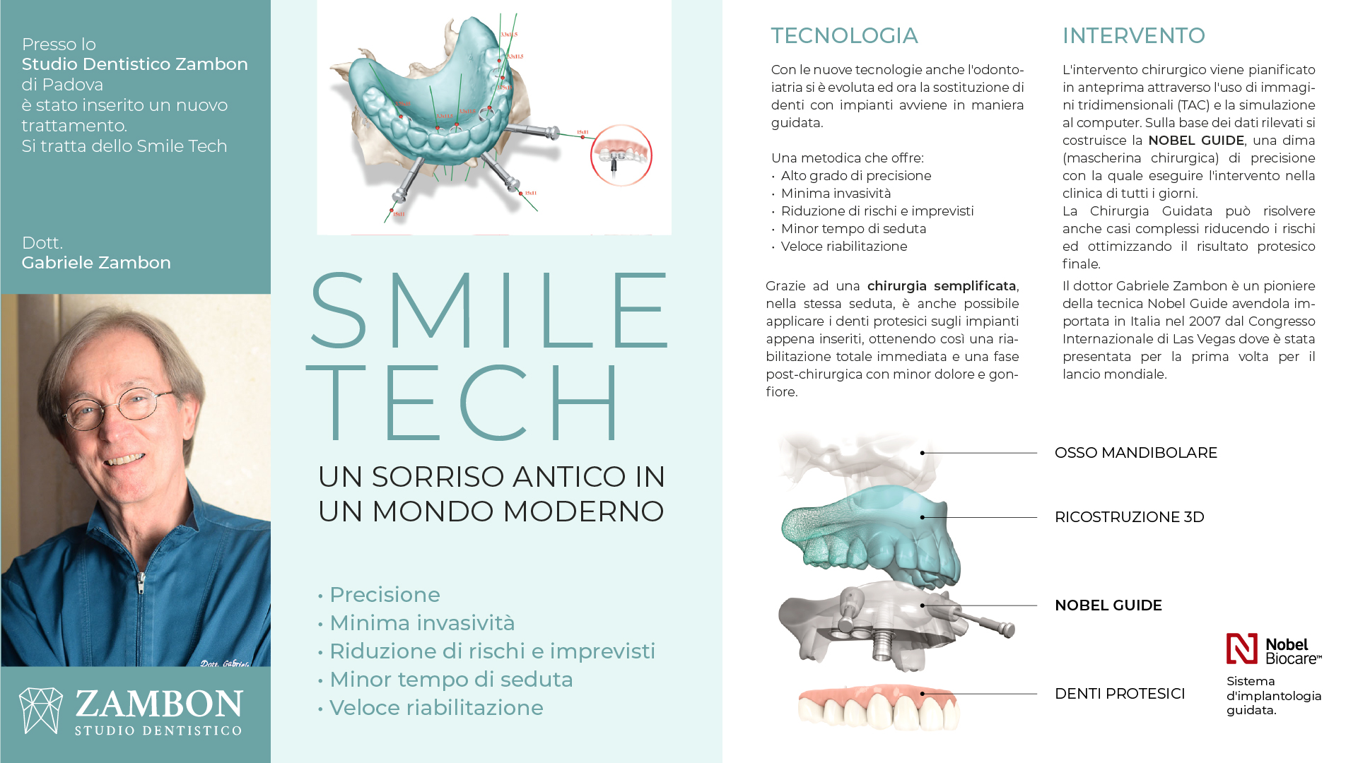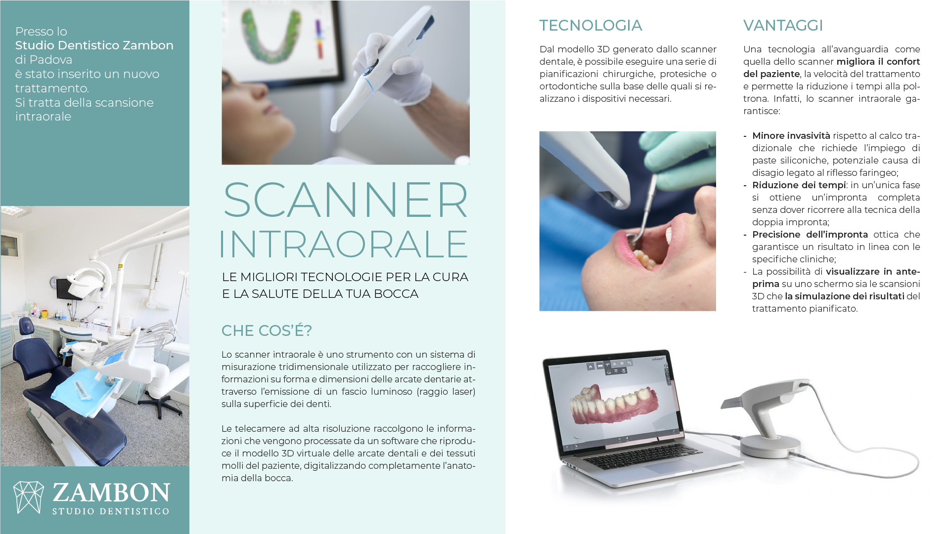 Lo Studio Zambon dispone di apparecchiature di ultima generazione, anche in campo diagnostico, come la Tac 3D Cone Beam, utilizzata in chirurgia, endodonzia e parodontologia, che consente una visione in 3D della struttura ossea e garantisce dosi radianti ridotte.